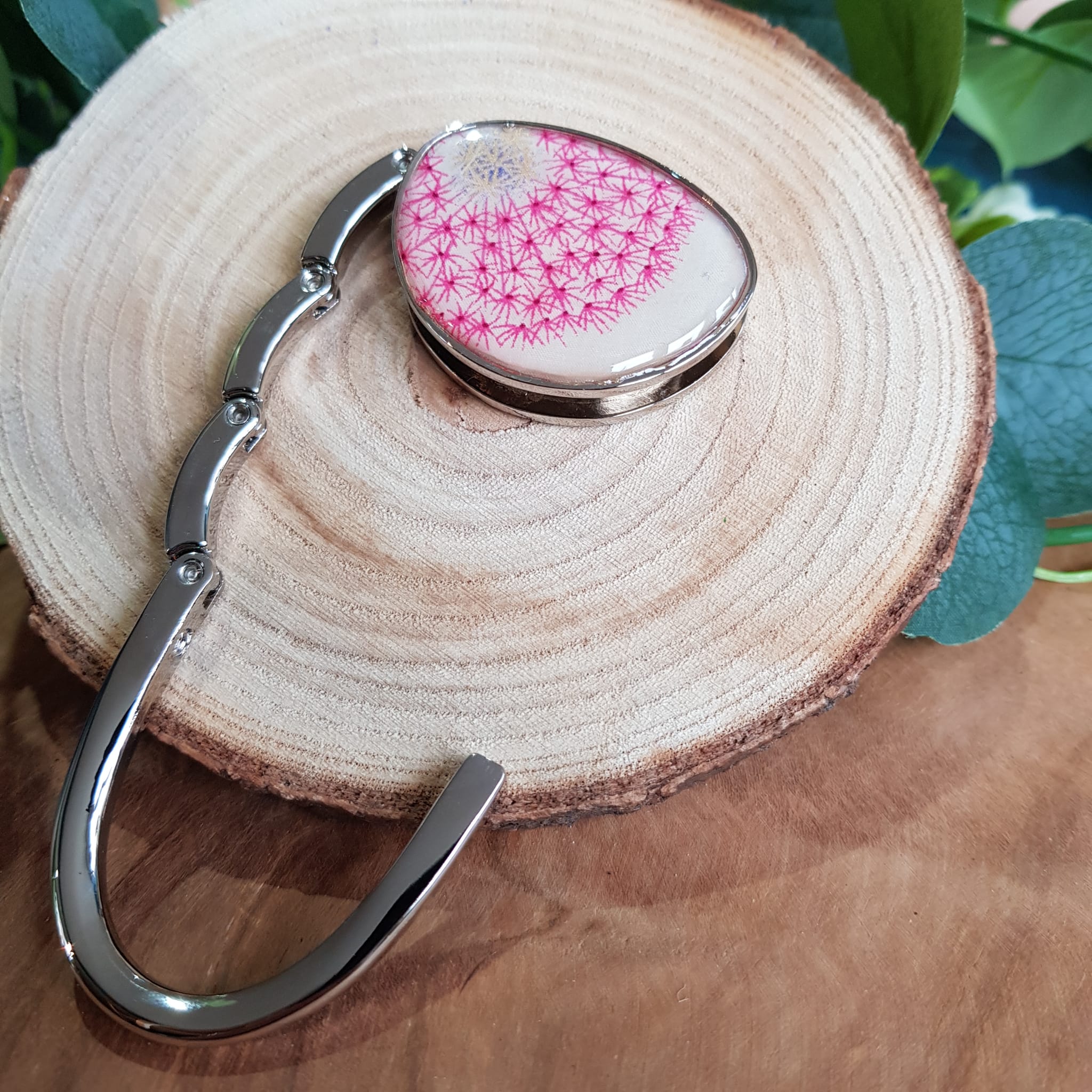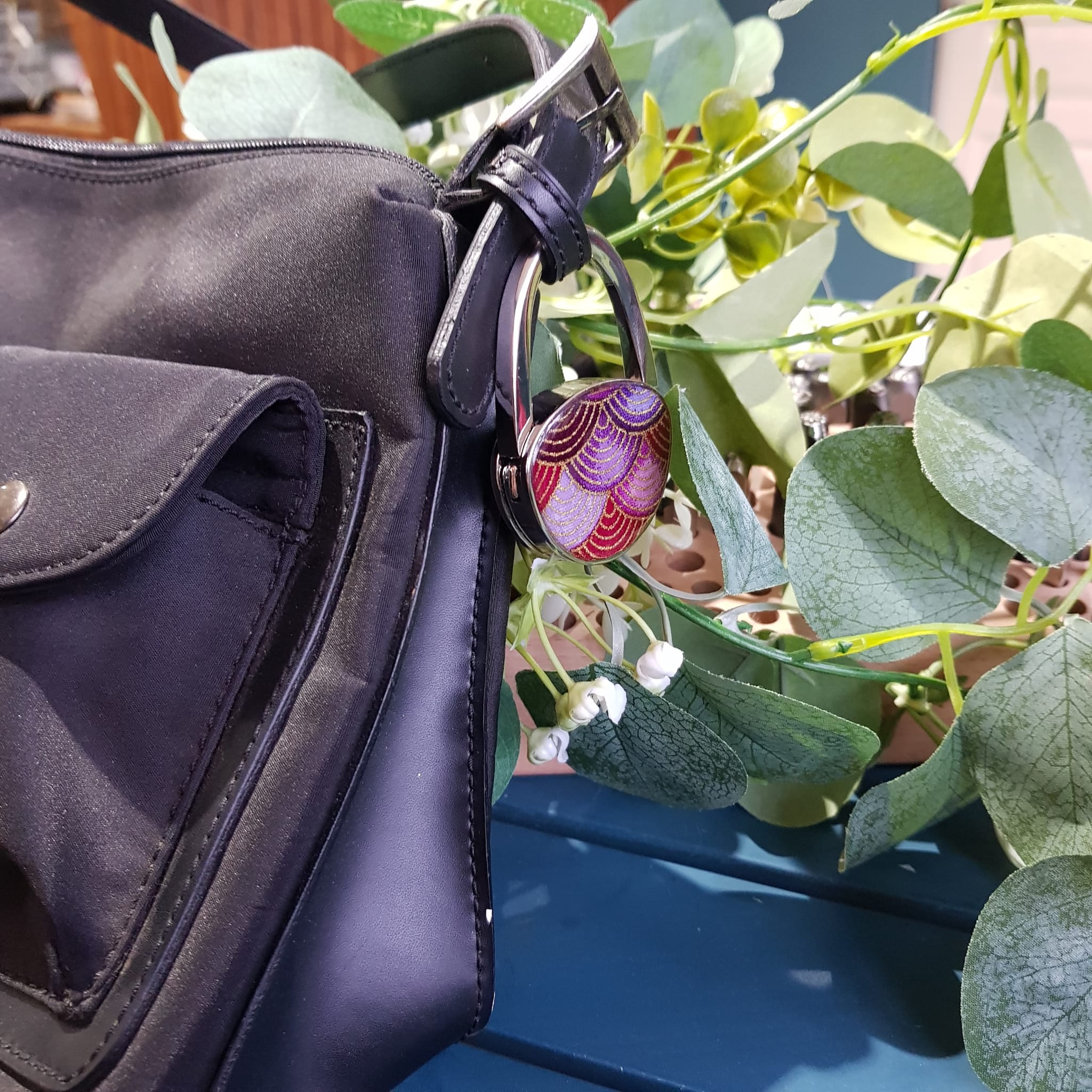 Marre de chercher votre accroche sac au fond du sac? Grâce à son design unique, cet accroche sac à main solide se fixe sur l’anse ou l’anneau de votre sac à main et se transforme en bijou de sac quand il n’est pas posé sur la table du restaurant, du salon de thé, de la salle de réunion, du RDV à la banque ou chez le médecin…